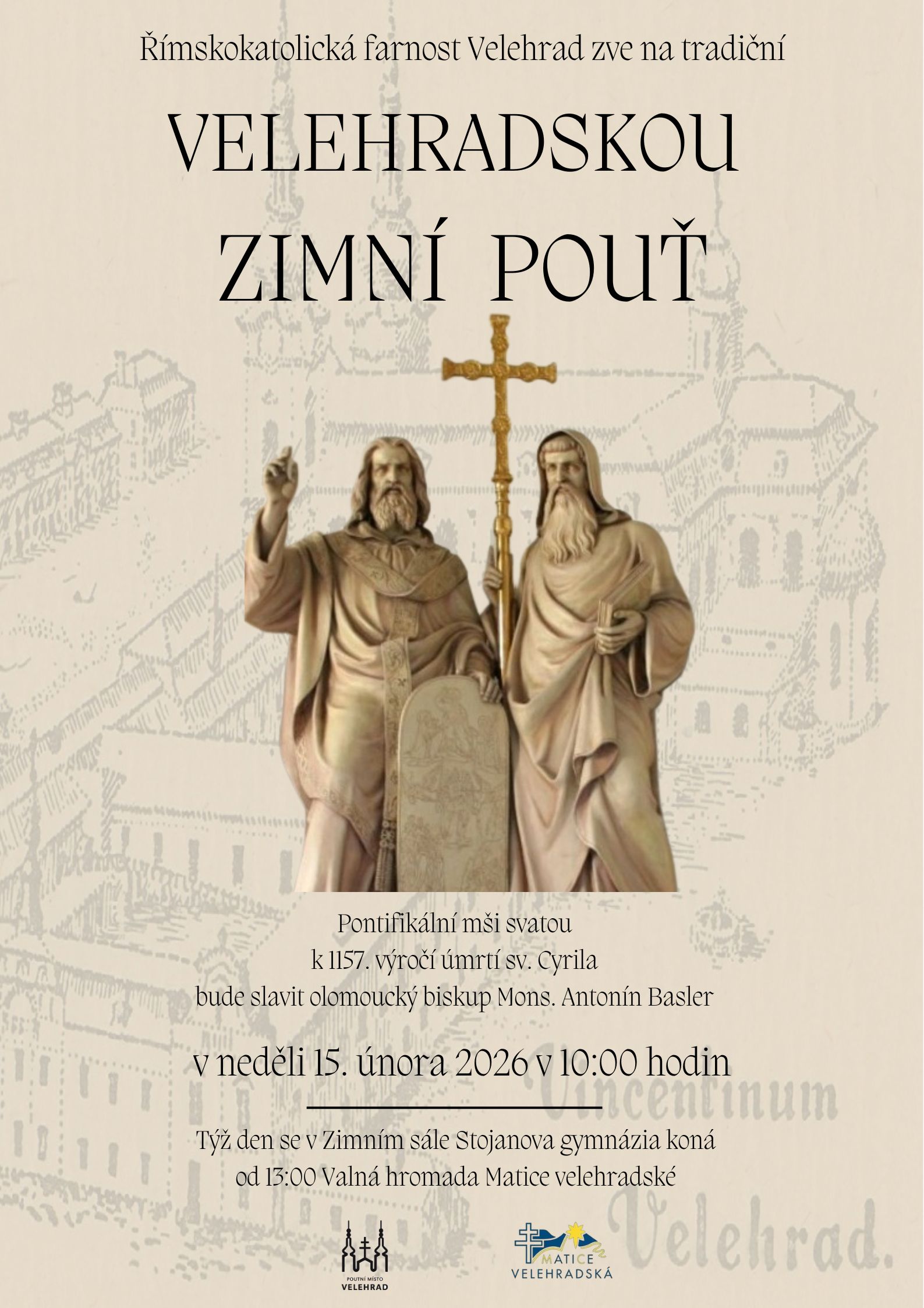 Týž den se bude konat od 13:00 ve Slovanském sále Stojanova gymnázia na Velehradě Valná hromada Matice velehradské.